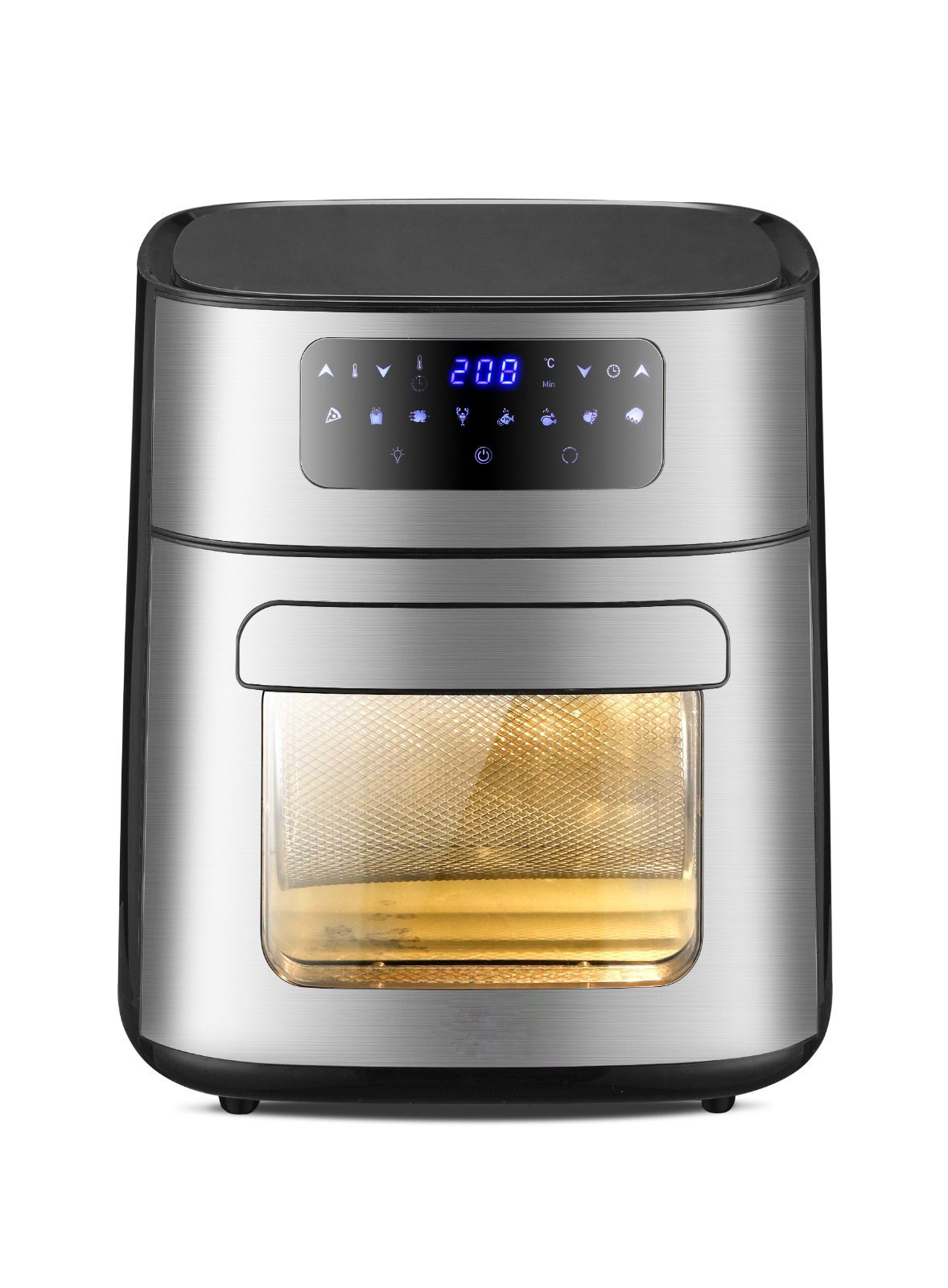 No solo es una horno freidora sin aceite, sino también una parrilla, un deshidratador de frutas y un horno para pizzas. Con un amplio rango de temperatura de 80 ℃ a 200 ℃, puede asar, hornear, tostar y deshidratar con esta máquina. La capacidad extra grande de 10 litros de freidora aire con 2 platos puede preparar deliciosos alimentos bajos en grasa para más miembros de la familia.