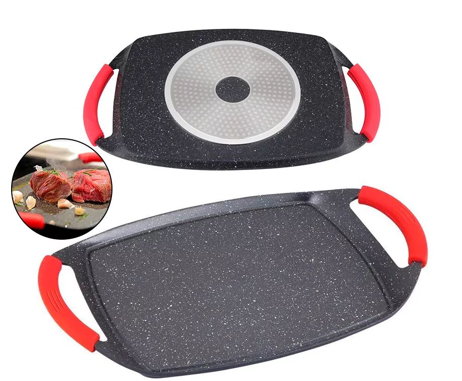 Superficie de plancha para cocinar desde carne y verduras, hasta huevos fritos, marisco, pescado e incluso crepes. Aptas para inducción, gas, vitrocerámica y eléctrica.