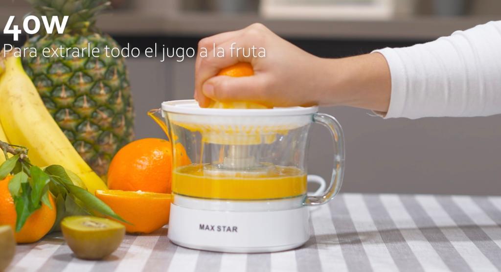 ✔️Una ligera presión sacará todo el jugo a las frutas de forma continua